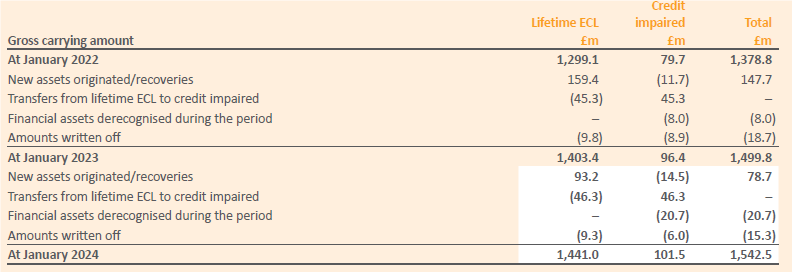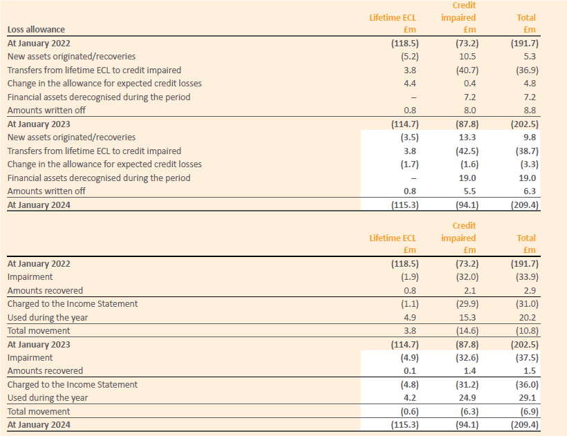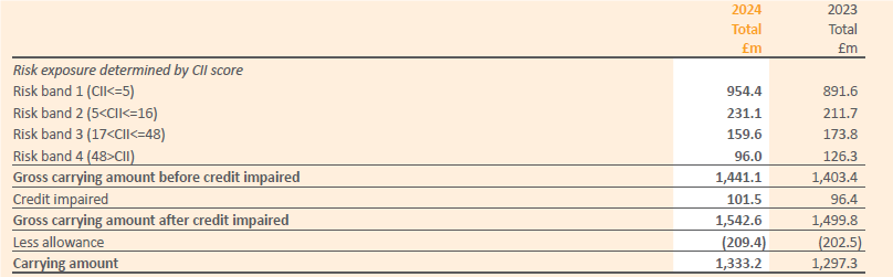 Customer receivables with a value of £12.1m (2023: £17.6m) were on a Reduced Payment Indicator (RPI) plan. An allowance for Expected Credit Losses (ECLs) of £8.7m (2023: £12.3m) has been made against these balances. Customers are typically on RPI plans for a period of 12 months during which no interest is charged and repayment rates are reduced. On completion of the RPI plan the customer would be returned to normal scoring, which considers multivariate factors, including indebtedness and repayment history, in the assessment of their expected risk levels. Any modification gain or loss recognised is immaterial to the financial statements.