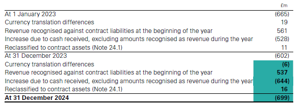 The amount of revenue recognised in the year from performance obligations satisfied (or partially satisfied) in previous periods amounted to £2m (2023: £4m).
