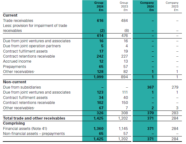 As at 31 December 2024, the Group’s contract assets, contract liabilities and contract provisions amounted to £229m, £699m and £617m respectively as set out in Notes 24 and 27. The Group has considered the nature of the estimates involved in deriving these balances and concluded that it is possible, on the basis of existing knowledge, that outcomes within the next financial year may be different from the Group’s assumptions applied as at 31 December 2024 and could require a material adjustment to the carrying amounts of these assets and liabilities in the next financial year. However, due to the level of uncertainty, combination of cost and income variables and timing across a large portfolio of contracts (in excess of 1,000) at different stages of their contract life, it is impracticable to provide a quantitative analysis of the aggregated estimates that are applied at a portfolio level.
