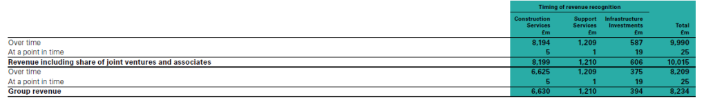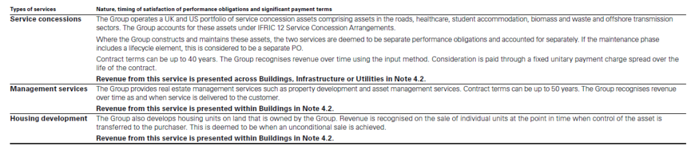The Group’s work in this segment supports existing assets through maintaining, upgrading and managing services across utilities and infrastructure assets. Revenue generated in this segment is measured over time as control passes to the customer as and when services are provided. Progress is measured by reference to the cost incurred on the contract to date compared to the contract’s end of job forecast (the input method). Payments are structured as milestone payments set out in the respective contracts.