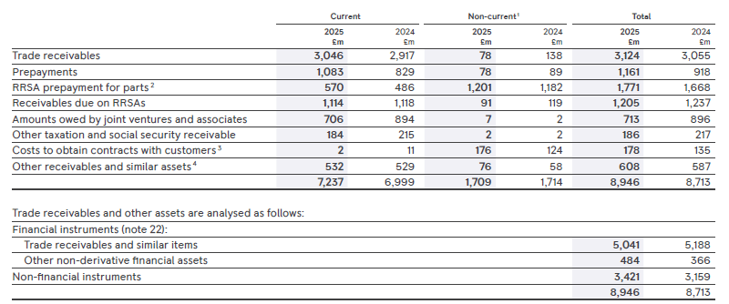 2 These amounts reflect the contractual share of EFH flows and original equipment deposits from customers paid to RRSA partners in return for the supply of parts in future periods under long-term supply contracts. During the year £597m (2024: £262m) has been charged to cost of sales in relation to parts supplied and used in the year
