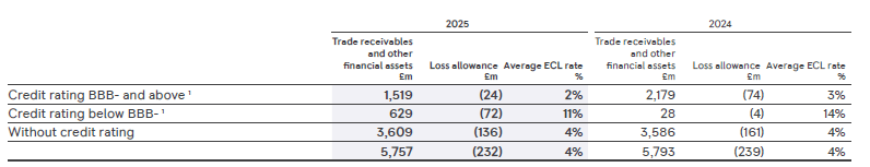 1 During the year, there has been a change to the classification used for investment gradings. In 2024, the ratings were reported using credit ratings C and above, credit ratings C and below and without credit rating. In 2025, the ratings have been reported using credit rating BBB- and above, credit rating below BBB- and without credit rating