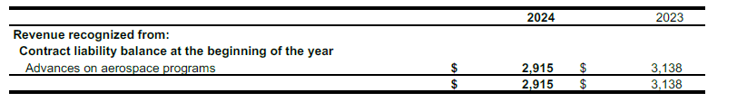 Contract liabilities – Are recognized when amounts are received from customers in advance of transfer of goods or services. Contract liabilities are subsequently recognized in revenue as or when the Corporation performs under contracts. Contract liabilities comprise advances on aerospace programs and other deferred revenues related to operation and maintenance of systems.
