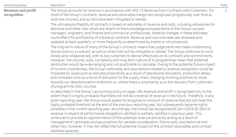 The Group accounts for revenue in accordance with IFRS 15 Revenue from Contracts with Customers. For most of the Group’s contracts, revenue and associated margin are recognised progressively over time as costs are incurred, and as risks have been mitigated or retired.