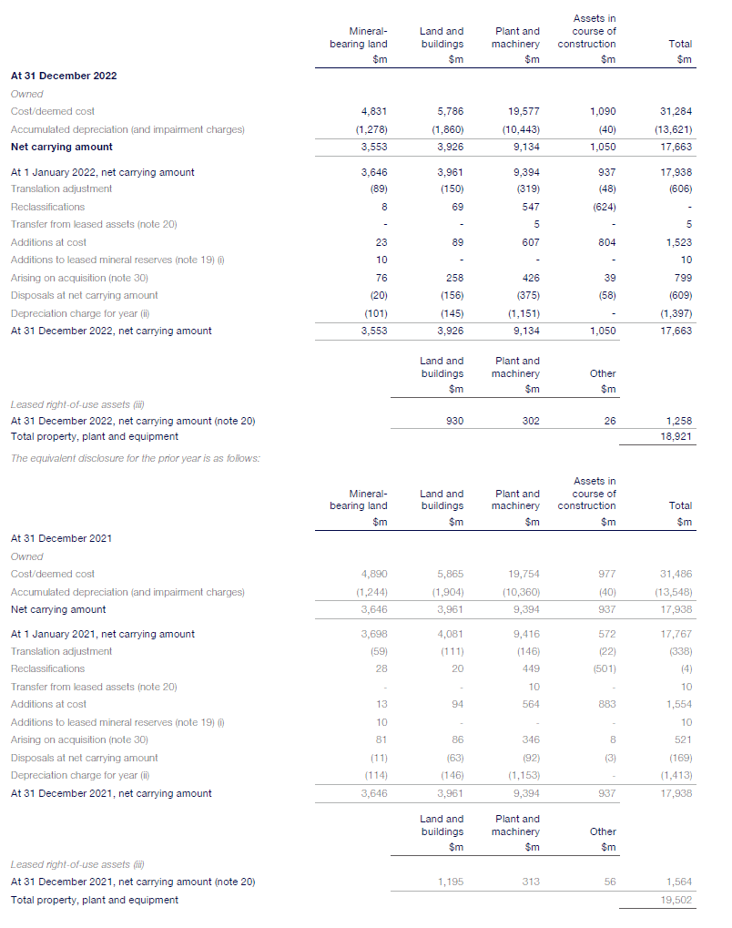 (i) Additions relating to leased mineral reserves which fall outside the scope of IFRS 16.