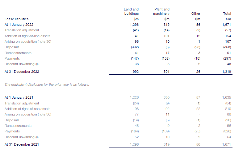 (i) The depreciation charge includes $11 million (2021: $34 million; 2020: $33 million) relating to discontinued operations.
