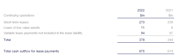 Lease commitments for short-term leases are similar to the portfolio of short-term leases for which the costs, as above, were expensed to the Consolidated Income Statement. The effect of excluding future cash outflows arising from variable lease payments, termination options, residual value guarantees and leases not yet commenced from lease liabilities was not material for the Group. The potential undiscounted future cash outflows arising from the exercise of renewal options that are not expected to be exercised (and are therefore not included in the lease term) are as follows:
