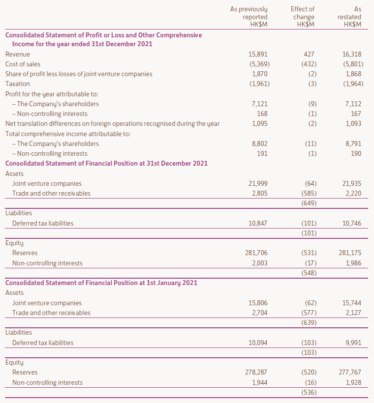 The change in accounting policy affected the following items in the consolidated statement of profit or loss and other comprehensive income for the year ended 31st December 2022 and the consolidated statement of financial position at 31st December 2022: