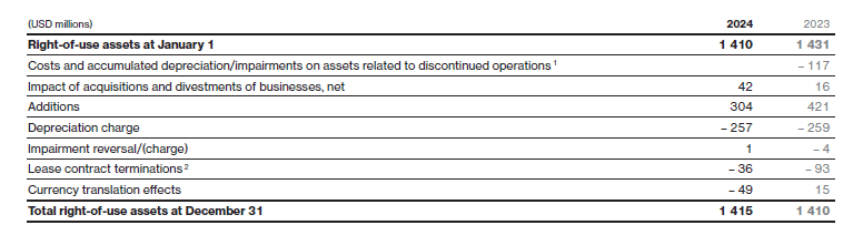 1 The 2024 estimated timing of the commitments for leases not yet commenced are as follows: 2025 USD 57 million, 2026 USD 15 million, 2027 USD 4 million, 2028 USD 4 million, 2029 USD 4 million and thereafter USD 39 million.