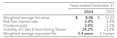 On the vesting date, we redeem all of the participants’ RSUs in cash or by issuing one Class B Non-Voting Share for each RSU. We have reserved 4,000,000 Class B Non-Voting Shares for issue under this plan.