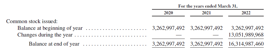 The total number of authorized shares of TMC’s common stock was 10,000,000,000, 10,000,000,000 and 50,000,000,000 as of March 31, 2020, 2021 and 2022, respectively.
