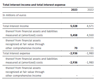 Total interest income and total interest expense for financial assets or financial liabilities that are not recognized at fair value through profit or loss are shown in the following table.