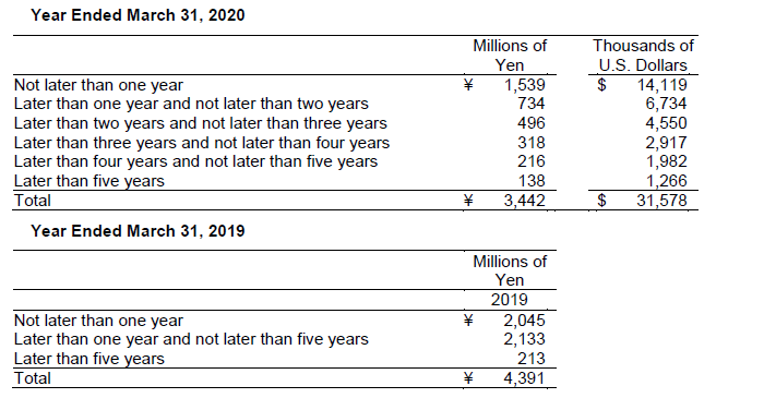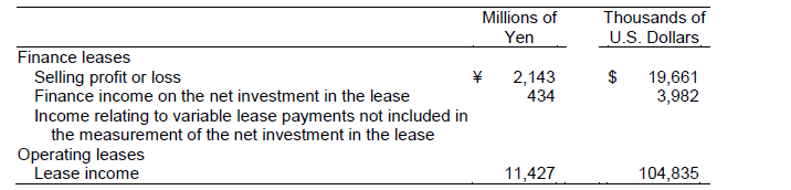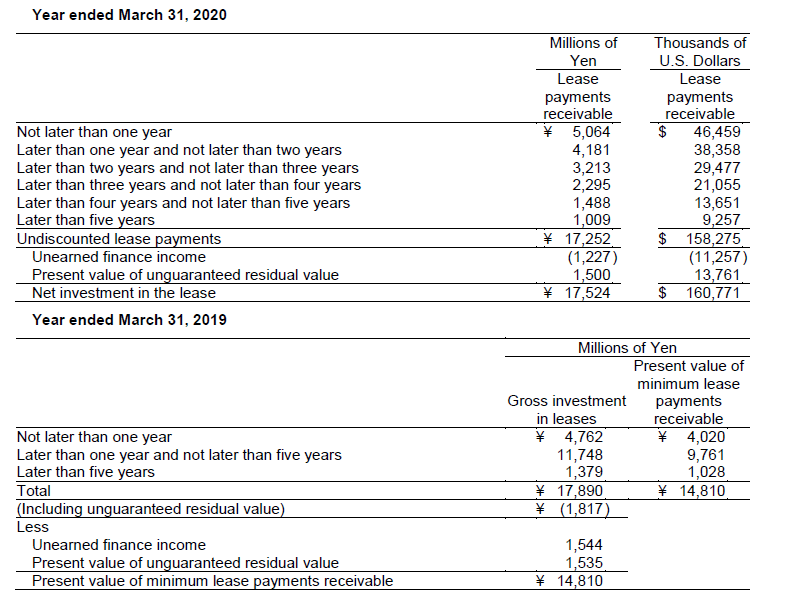 In the lease income, ¥5,574 million ($51,138 thousand) of variable lease payments which do not depend on index or rate is included for the year ended March 31, 2020.