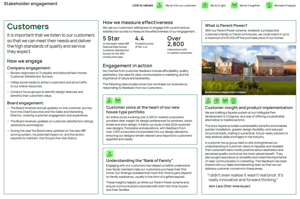 As a Board we review the Company’s key stakeholders on an annual basis to ensure that they remain appropriate and consider whether there are other stakeholder groups whose views should form part of our discussions. To ensure that engagement remains effective, we also review key metrics and performance indicators for various engagement activities. During the year, we considered stakeholder engagement as part of the Board evaluation process and, whilst satisfied that engagement remains effective for fostering business relationships, agreed actions to further enhance direct engagement between Board members and the Company’s key stakeholder groups.