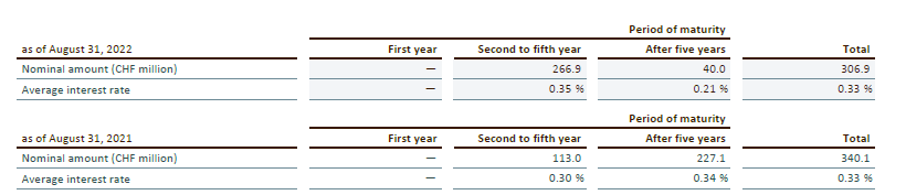 The following table provides information about the maturity of the nominal amount and interest rates attached to the swaps held by the Group as of August 31, 2022 to hedge its interest rate risk: