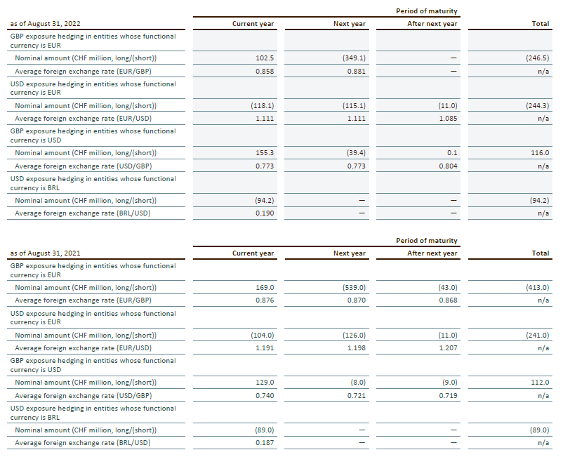 The following table provides information about the foreign exchange forwards and futures in case of the major foreign currency hedging pairs held by the Group as of August 31, 2022 to hedge its foreign exchange risk: