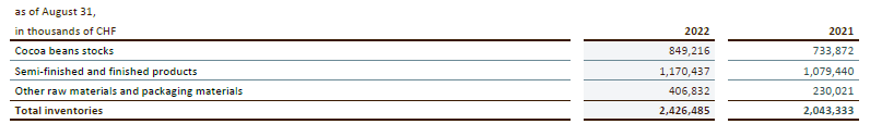 As at August 31, 2022, the value of cocoa and chocolate inventories designated in a hedging relationship amounted to CHF 1,276.4 million (2021: CHF 1,134.6 million), on which a fair value hedge adjustment of CHF 60.8 million was recorded (2021: CHF 15.4 million). For further detail of hedged inventories refer to Note 3.7.9 – “Effect of hedge accounting on the financial position and performance”.