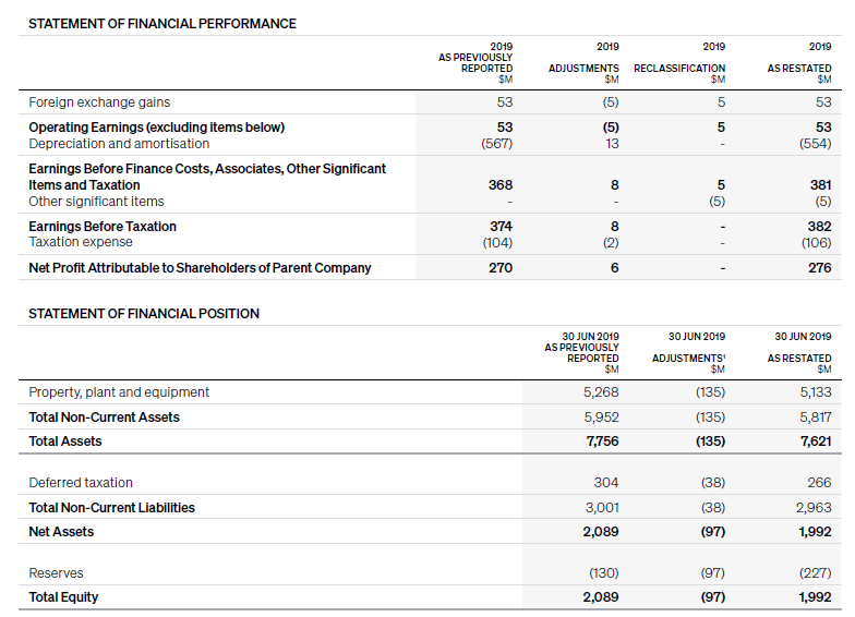 - as a result of retrospectively applying the IFRIC agenda decision, cumulative foreign exchange gains recognised within aircraft assets were reversed. The impact in the year to 30 June 2019 was $5 million, offset by $13 million of depreciation expense on the accumulated position.
