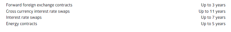 The Group’s activities expose it to a variety of financial risks: market risk (including foreign exchange risk, fair value and cash flow interest rate risks, and energy portfolio risk), credit risk and liquidity risk. The Group’s overall risk management programme focuses on the unpredictability of financial markets and seeks to minimise the impact of exchange rate, interest rate and energy price fluctuations on the Group’s financial performance. The Group uses different derivative financial instruments to manage its exposure in these areas. All derivative financial instruments are employed solely for hedging purposes.