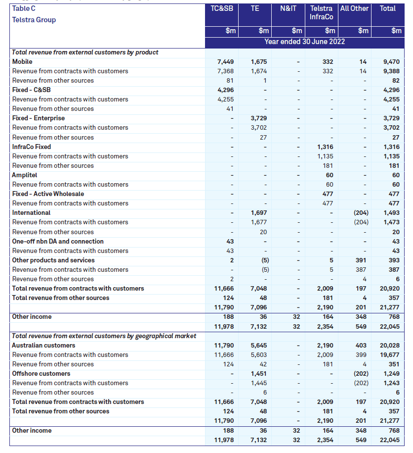 Revenue from other products and services includes miscellaneous income and revenue generated by Telstra Health.