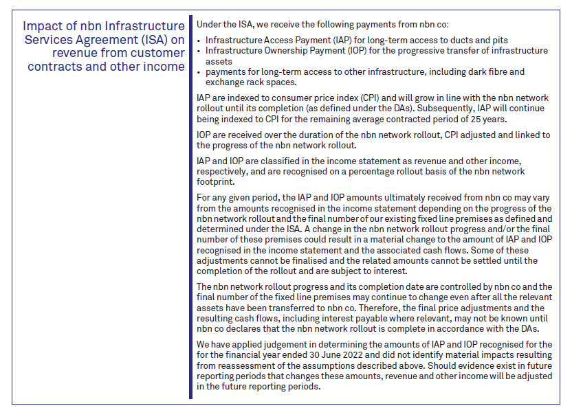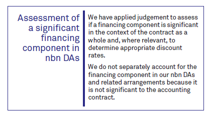 Future revenue arising from nbn DAs is estimated based on a number of assumptions which are reassessed at each reporting period. However, given its size, long-term nature and a number of variable components impacting the contract consideration (refer to note 2.2.2 for details), the actual amounts recognised in the future periods may still materially differ from our estimates.