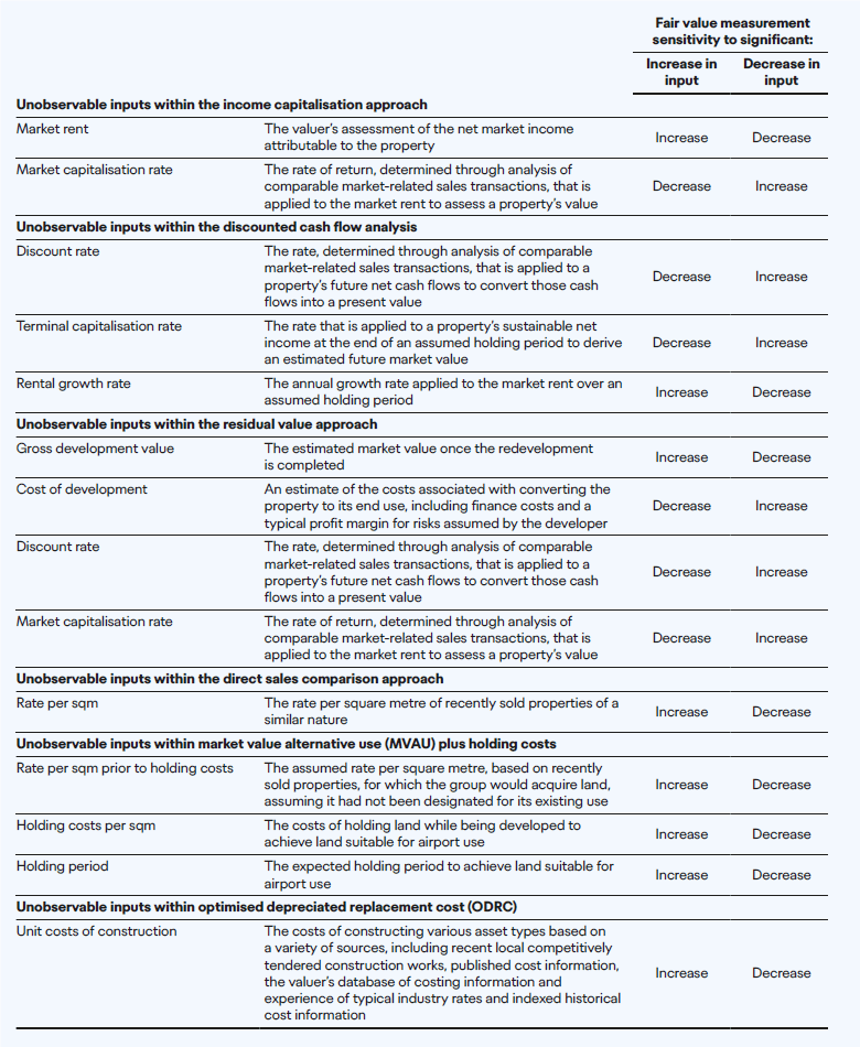 The group’s land, buildings and services, infrastructure, runway, taxiways and aprons are all categorised as Level 3 in the fair value hierarchy as described in note 2(e). During the year, there were no transfers between the levels of the fair value hierarchy.