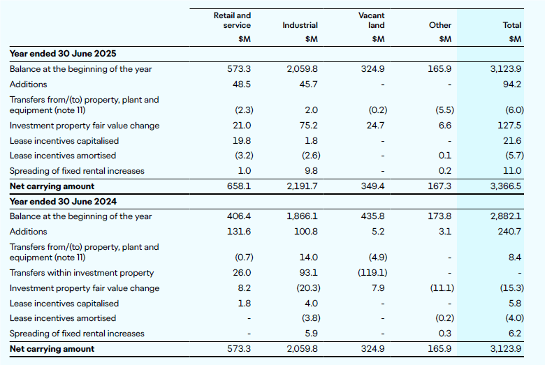 - Industrial carried at $2,191.7 million (30 June 2024: $2,059.8 million); and