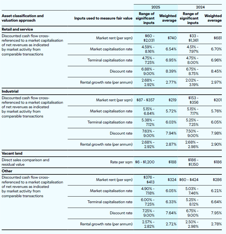 The investment properties assigned to valuers are rotated across the portfolio every three years, with the most recent rotation occurring in June 2025. All valuers are registered valuers and industry specialists in valuing the above types of investment properties.