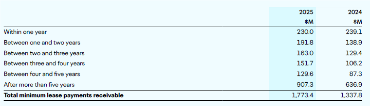 The group had contractual obligations to purchase or develop property, plant and equipment for $1,113.4 million at 30 June 2025 (2024: $439.9 million). These include works associated with the runway, aprons, terminals and landside projects.