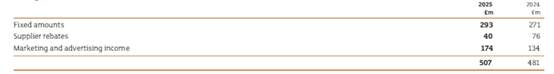 - Supplier rebates: Typically agreed on an annual basis, aligned with the Group’s financial year. The rebate amount is linked to pre-agreed targets such as sales volumes