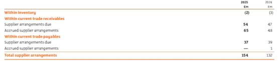 Additionally, £18 million (2024: £nil) of supplier arrangements contractually agreed but not yet earned is held on the balance sheet within deferred income