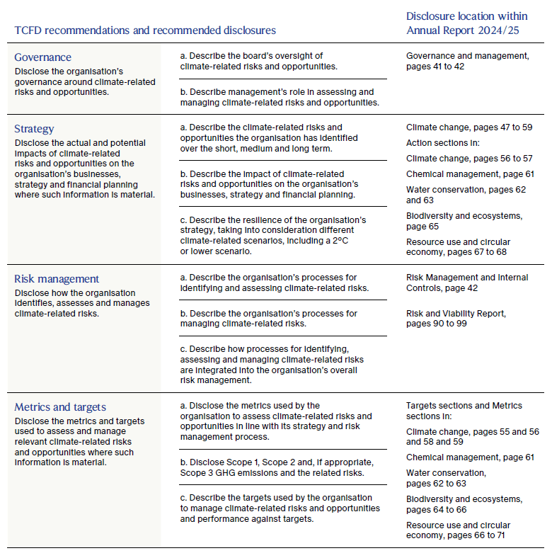 Below is a TCFD index outlining where we have reported on all key disclosure requirements.