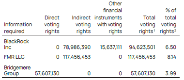 On 14 July 2025 the Company was notified that FMR LLC’s interest in the Company was as follows: Direct voting rights 0, Indirect voting rights 116,886,773, Other financial instruments with voting rights 0, Total voting rights 116,886,773 and % of total voting rights 8.12%.