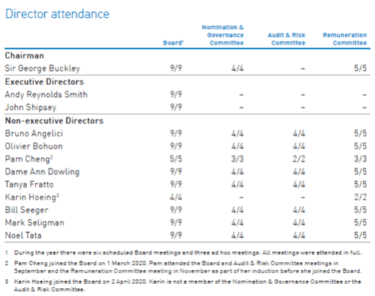 Sir George Buckley is absent when his own remuneration as Chairman of the Board is under consideration. The Chief Executive attends meetings of the Committee by invitation but he is not involved in the determination of his own remuneration, or present during consideration of any changes to it.